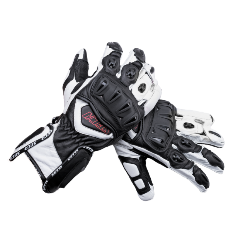Першокласні шкіряні рукавички Seca Atom II white для пілотів мотоциклів класу SUPERSPORT і STREET.