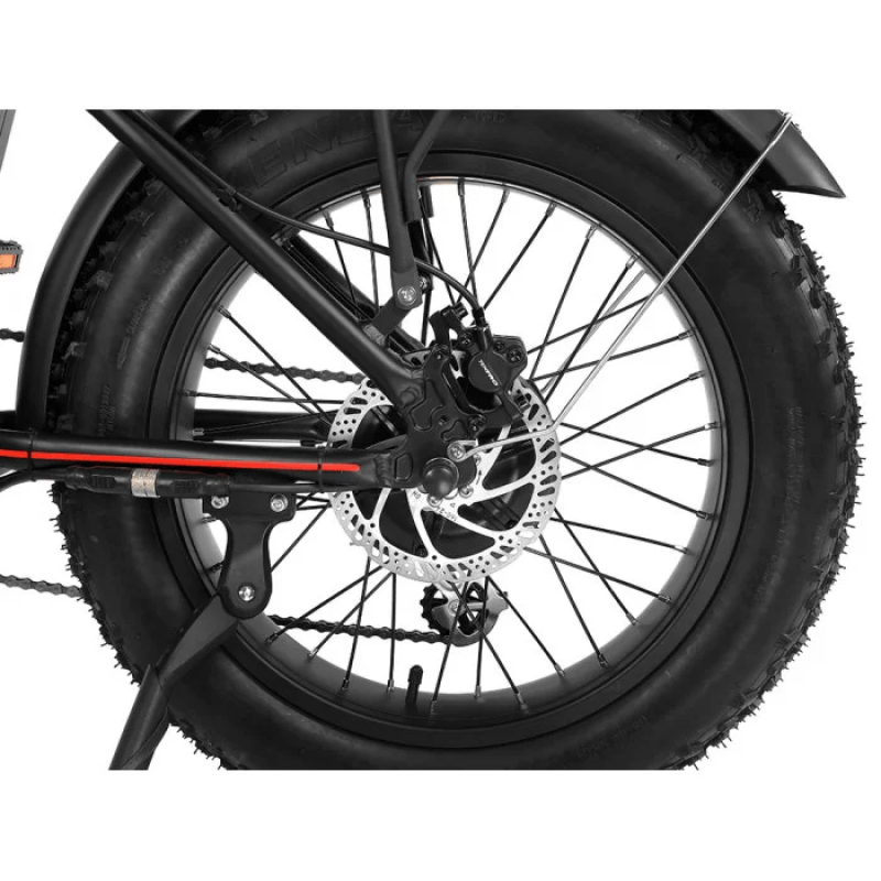 Модель обладнана широкими фет-шинами Kenda 20×4" з агресивним протектором, переднім амортизатором RSTта підсидільним амортизатором для комфортної їзди по нерівностях. Гідравлічні дискові гальма Tektro, трансмісія Shimano Altus на 7 швидкостей та LCD-дисплей із USB-портом забезпечують зручність і контроль під час поїздок.