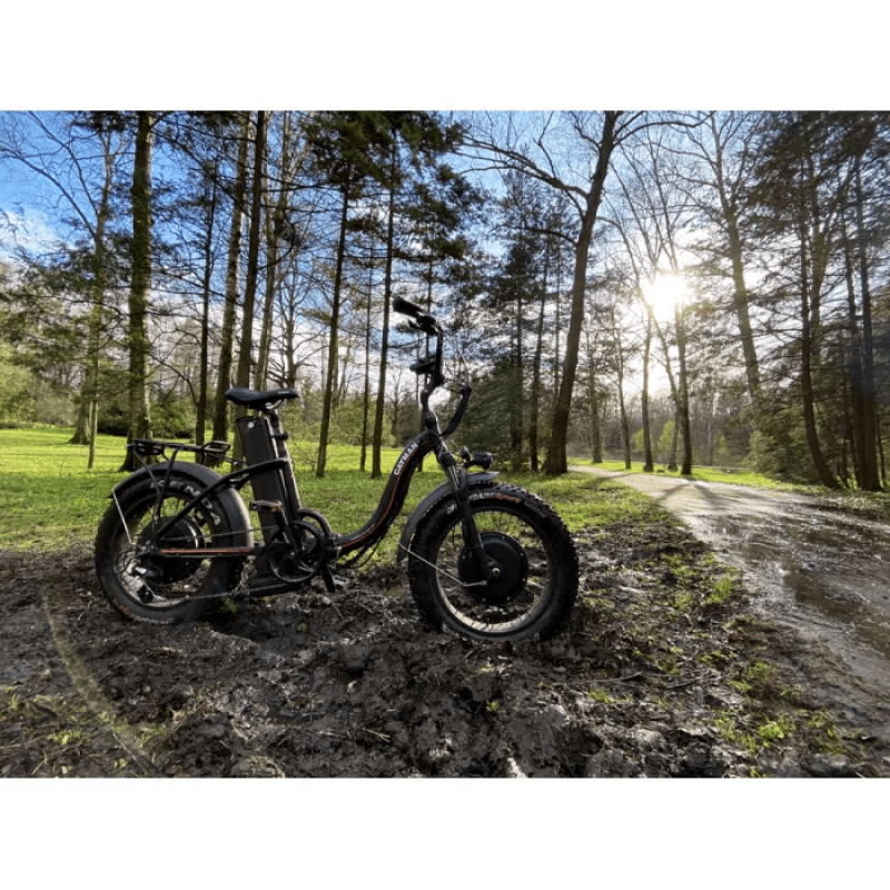 Електрофетбайк комплектується літій-іонним акумулятором 48V 24.5Ah (Samsung), який забезпечує запас ходу до 130 км у режимі педального асистента. Потужна батарея та повний привід дозволяють впевнено долати підйоми, складні ділянки дороги та бездоріжжя.