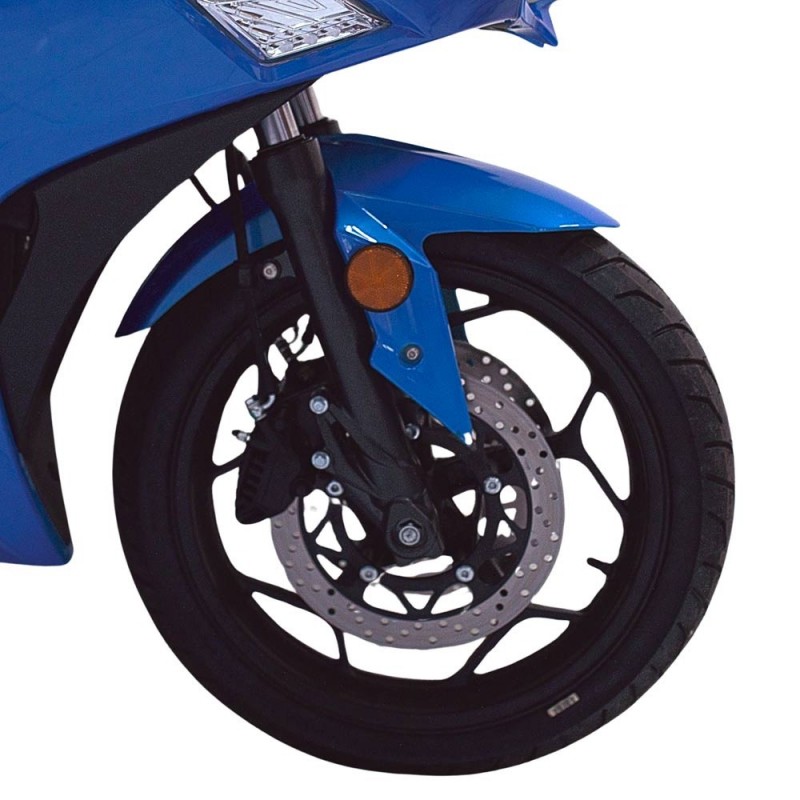 TV6 Wuxi Electric 3000W оснащений широкими передніми шинами розміром 110/70-17 і задніми шинами 140/60-17, забезпечуючи чудове зчеплення з дорогою і стабільність під час руху. Дискові гальма гарантують надійне та безпечне гальмування в будь-яких умовах.