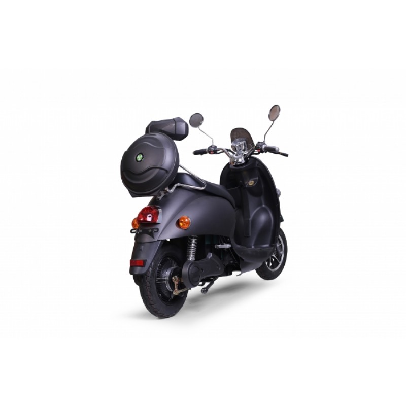 Модель оснащена ЖК-дисплеєм для контролю швидкості та рівня заряду батареї, а також має задній кофр для перевезення речей.