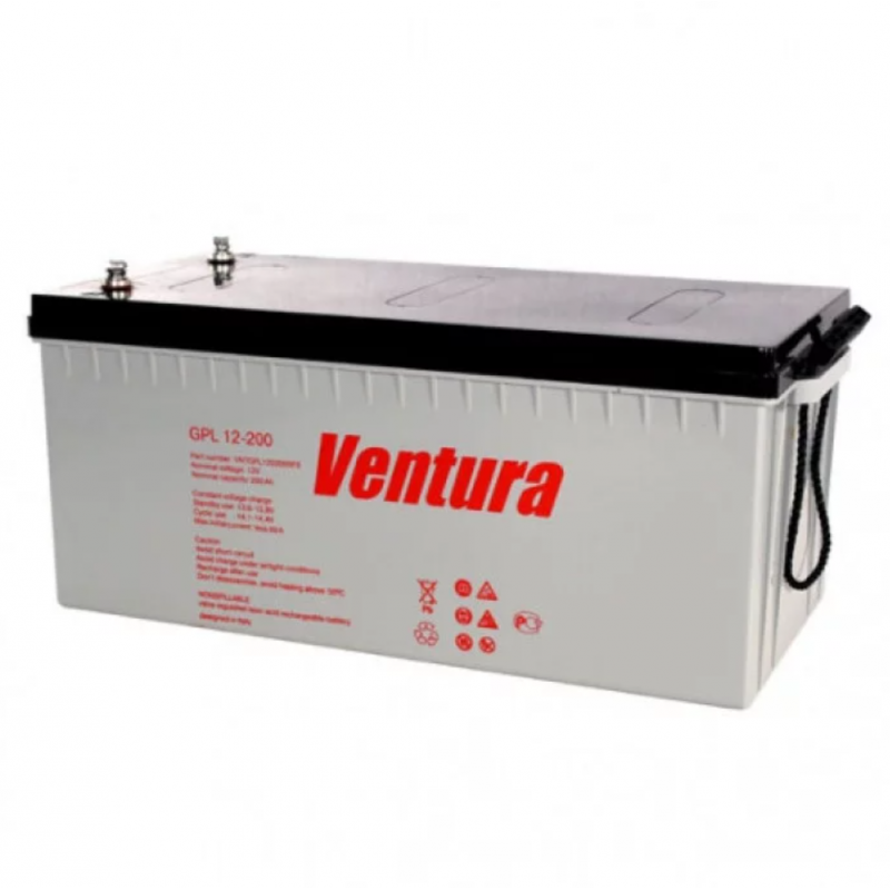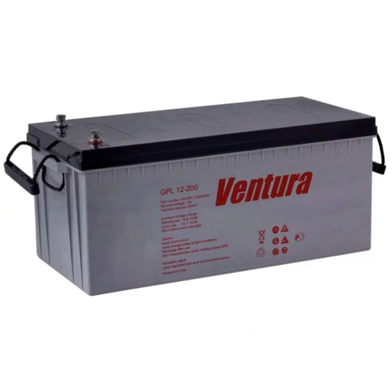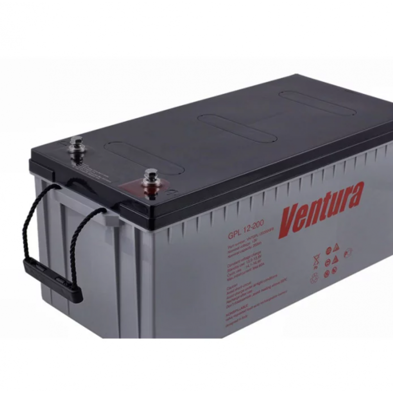 Акумуляторна батарея VENTURA GPL12B-200 AGM 12V 200Ah — це герметичний свинцево-кислотний акумулятор, виготовлений за технологією AGM (Absorbent Glass Mat), призначений для резервного живлення та буферного режиму роботи. Електроліт абсорбований у скловолоконні мати, що забезпечує стабільну напругу, низький саморозряд та повну відсутність необхідності в обслуговуванні.