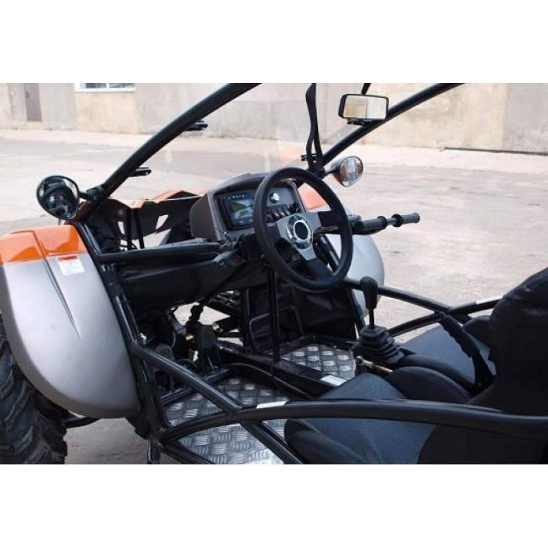 Шасі - просторова несуча клітка, зварена з сталевих труб круглого перетину, забезпечує високу жорсткість на кручення і поздовжній вигин. Підвіска - повністю незалежна, спереду встановлені подвійні, поперечні, трикутні важелі, гвинтові пружини і амортизатори. Ззаду встановлено по одному довгому подовжньому важеля, що спирається на гвинтові пружину і амортизатор. Така конструкція дозволяє домогтися гарної керованості при досить великих ходах підвісок. Трансмісія - автоматична КПП (варіатор) із знижуючим рядом, привід карданний, постійний на задню вісь з можливістю підключення передньої осі. Двигун інжекторний 4-х тактний V-TWIN c 8-ю клапанами, рідинного охолодження. Гальма - гідравлічні дискові на передній і задній осі, гальмо стоянки на задню вісь.