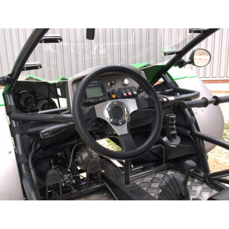 Шасі - просторова несуча клітка, зварена з сталевих труб круглого перетину, забезпечує високу жорсткість на кручення і поздовжній вигин. Підвіска - повністю незалежна, спереду встановлені подвійні, поперечні, трикутні важелі, гвинтові пружини і амортизатори. Ззаду встановлено по одному довгому подовжньому важеля, що спирається на гвинтові пружину і амортизатор. Така конструкція дозволяє домогтися гарної керованості при досить великих ходах підвісок. Трансмісія - автоматична КПП (варіатор) із знижуючим рядом, привід карданний, постійний на задню вісь з можливістю підключення передньої осі. Двигун інжекторний 4-х тактний V-TWIN c 8-ю клапанами, рідинного охолодження. Гальма - гідравлічні дискові на передній і задній осі, гальмо стоянки на задню вісь.