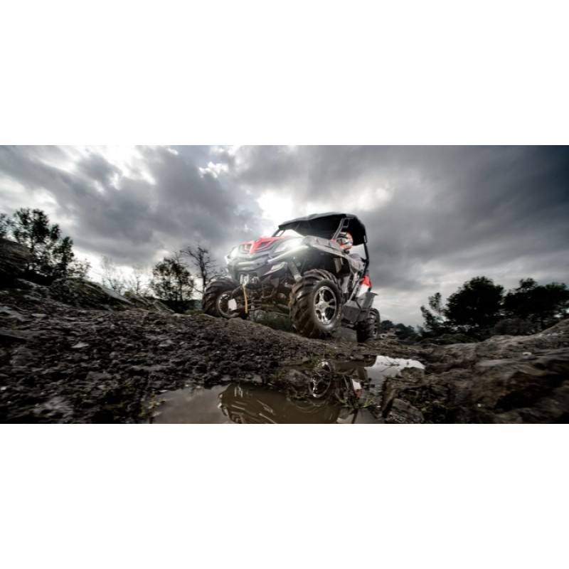 Подвійна регульована лебідка, керована вручну або за допомогою пульта дистанційного керування, дозволить Вам виходити переможцем навіть з найважчих положень. Крім того, у Вас є можливість змінювати зовнішній вигляд машини за допомогою цілого ряду доступних по додатковому замовленню першокласних аксесуарів, таких як вітрове скло, верх (дах), бічні сітки або бампери.