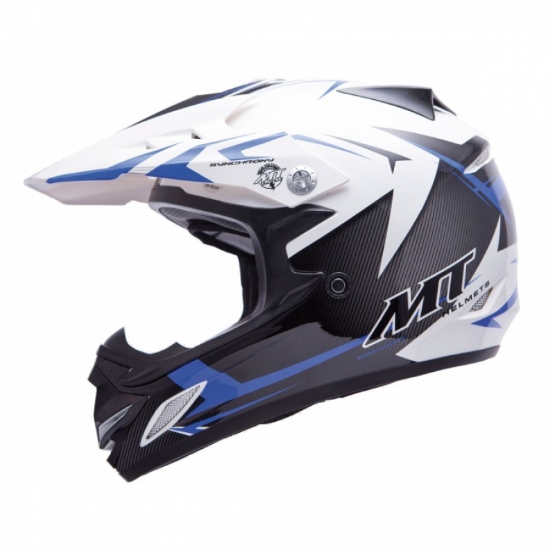 MT Helmets MX2 Synhrony Steel white / blue - комфортний кросовий дитячий шолом з високим ступенем захисту. Повністю облягає голову юного гонщика, підтримує її в правильному положенні, відмінно вентилюється. Посилена подбородочная дуга висунута вперед для того, щоб полегшити дихання мотоцикліста. Підкладка м'яка, вбирає, швидкознімна, з антибактеріальним просоченням, допомагає уникнути виникнення неприємного запаху.