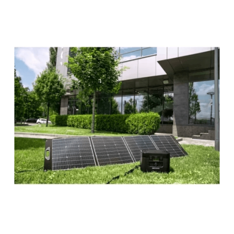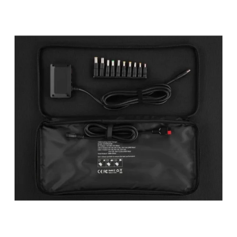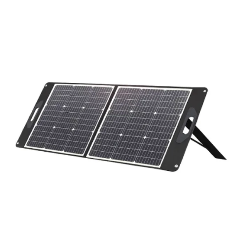 Модель потужністю 100 Вт відрізняється високим коефіцієнтом конверсії (22-23,5%) та продуманою конструкцією: панель має дві секції, опори для встановлення під оптимальним кутом нахилу, зручні рукоятки для легкого транспортування. Крім того, пристрій дійсно можна вважати мобільним: вагою 2,9 кг у складеному стані має розмір 560×632×45 мм, тому не займатиме багато місця, наприклад, у баулі, тоді як у розкладеному – 1265×560×25 мм. Також незаперечною перевагою моделі є багатство інтерфейсів. Панель оснащена роз'ємами DC, USB-A, USB-C та Anderson, що робить її придатною для використання з різними типами пристроїв та зарядними станціями. А технологія QC3.0 дозволить зарядити сумісний акумулятор до 50% приблизно за 30 хвилин, автоматично визначаючи оптимальний рівень напруги, що максимізує ефективність зарядки. Вихідний постійний струм становить 12-20 В, 5 А (макс.).