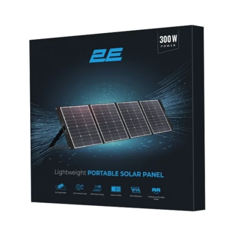 При потужності 300 Вт вага моделі менша на 40 % порівняно з сонячними панелями аналогічної потужності та становить 7,1 кг. Але це не впливає на коефіцієнт конверсії – 22-23,5%. Крім того, 2E-PSPLW300 відрізняється ергономічністю, що обумовлює зручність використання: конструкція панелі з чотирьох секцій складна, а легке транспортування забезпечують надійні ручки. У складеному стані пристрій має розмір 718х630х45 мм, а в розкладеному – аж 2355х718х25 мм. Для ефективної «складання» сонячної енергії панель можна встановлювати під нахилом завдяки спеціальним опорам.