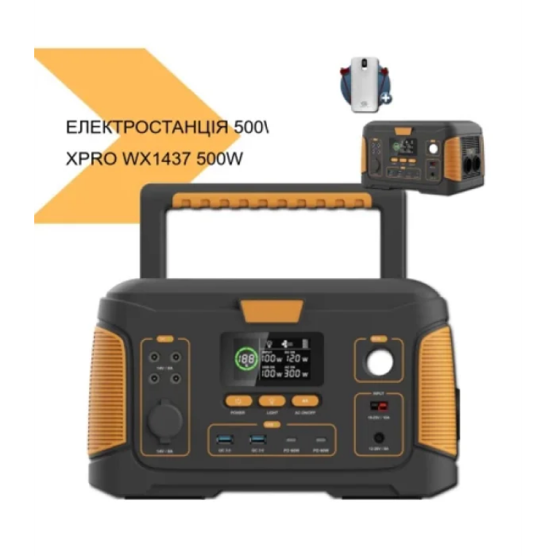 Портативна електростанція WX1437 500W - це надійне джерело живлення для використання в походах, під час кемпінгу, на дачі або в автомобілі.