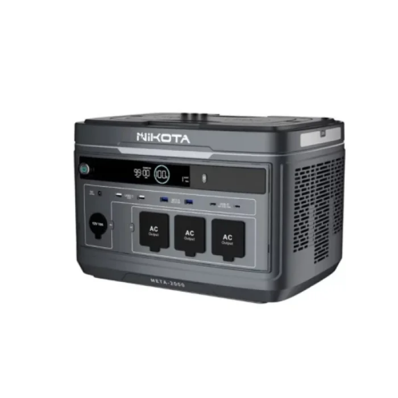 Портативна зарядна станція NiKOTA META2000LFP (1152Wh/192000mAh) 2500Вт. Зарядна станція Nikota Meta2000LFP 1152Wh/1500W/2500W (LFP (LiFePO4) акумулятор) із захистом від подачі напруги на вихід 220вольт. Зробіть свій наступний відпочинок за допомогою чудового зарядного пристрою NiKOTA META-2000. NIKOTA META-2000-LFP 1152Wh/1500W/2500W – зарядна станція оснащена супершвидкою зарядкою (менше 90 хвилин). Характеристики: Вага нетто: 16 кг