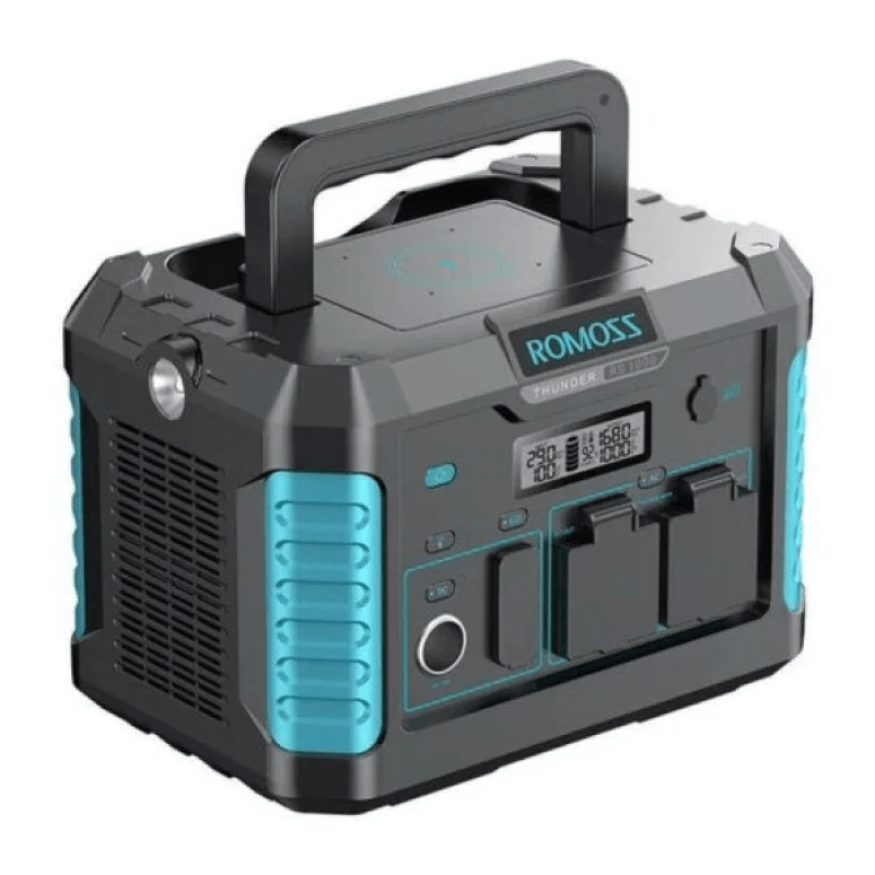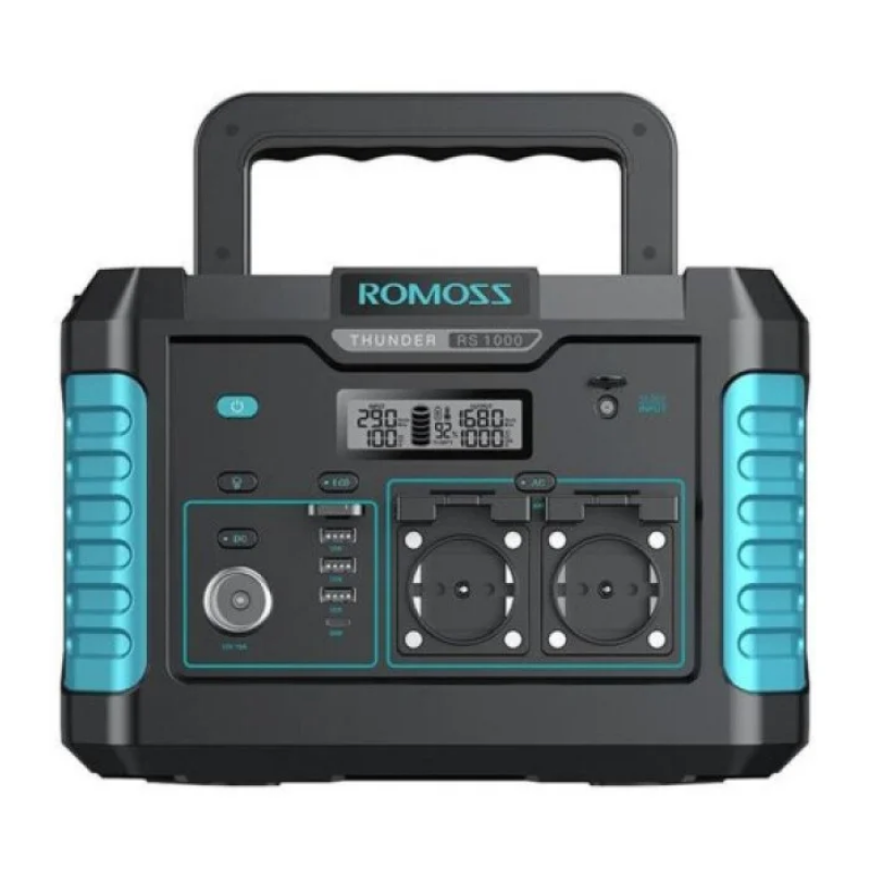 На базі зарядної станції Romoss RS1000 є виходи стандартів USB Type-C та Type-A, AC, DC, автомобільна розетка, бездротова зарядка 10W. Показник 1000W можна підняти вдвічі, за рахунок чого ви зможете дати джерело живлення потужним побутовим приладам, заряджаючи при цьому до 8 одиниць техніки одночасно.