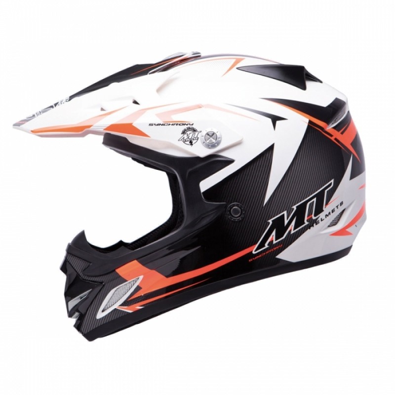 MT Helmets MX2 Synhrony Steel white / orange - комфортний кросовий дитячий шолом з високим ступенем захисту. Повністю облягає голову юного гонщика, підтримує її в правильному положенні, відмінно вентилюється. Посилена подбородочная дуга висунута вперед для того, щоб полегшити дихання мотоцикліста. Підкладка м'яка, вбирає, швидкознімна, з антибактеріальним просоченням, допомагає уникнути виникнення неприємного запаху.