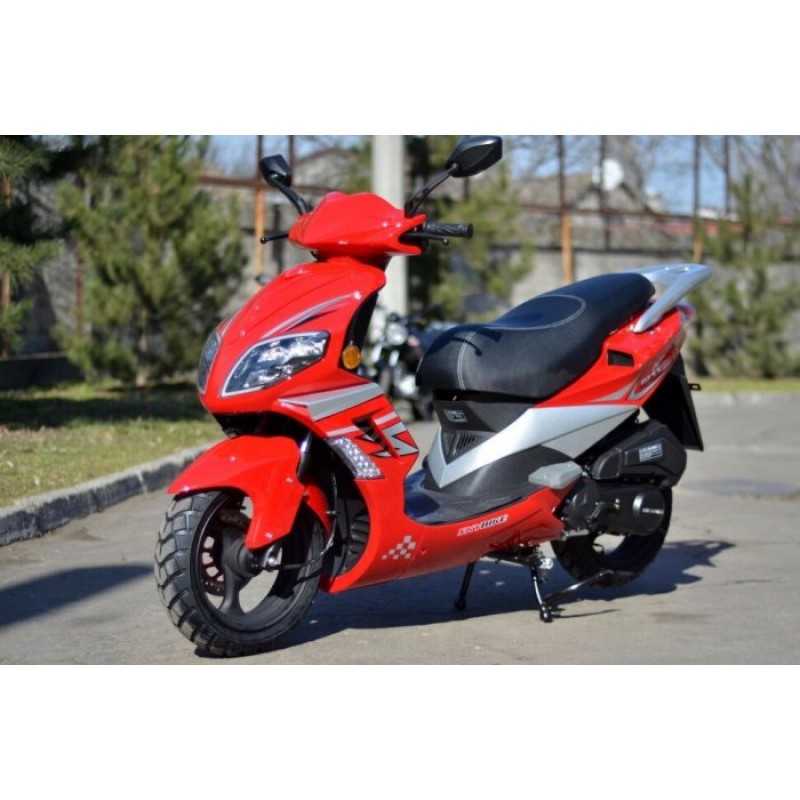 Автоматична трансмісія (варіатор) забезпечує плавний розгін і просте керування. Телескопічна передня підвіска та задня підвіска з двома амортизаторами гарантують стабільність і комфорт навіть на нерівному покритті. Великі колеса 13″ забезпечують хорошу керованість і впевнену їзду.