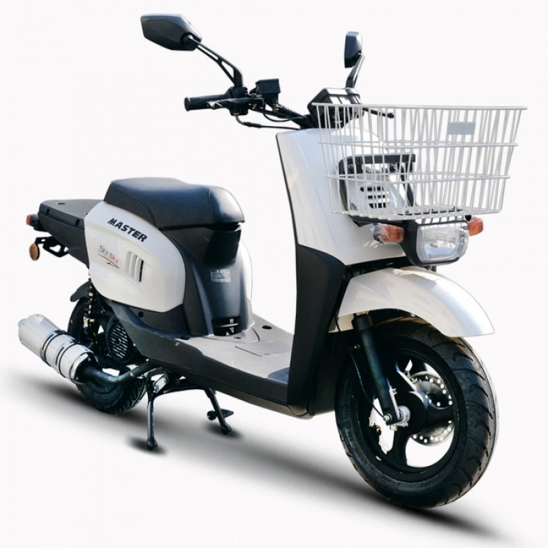 Телескопічна передня підвіска та задня підвіска з двома амортизаторами гарантують комфортну їзду навіть на нерівній дорозі. Переднє дискове гальмо забезпечує ефективне гальмування, а економічний двигун робить скутер вигідним у щоденному використанні.