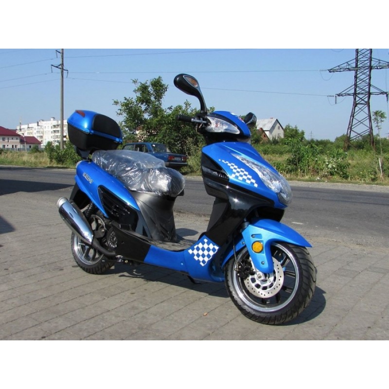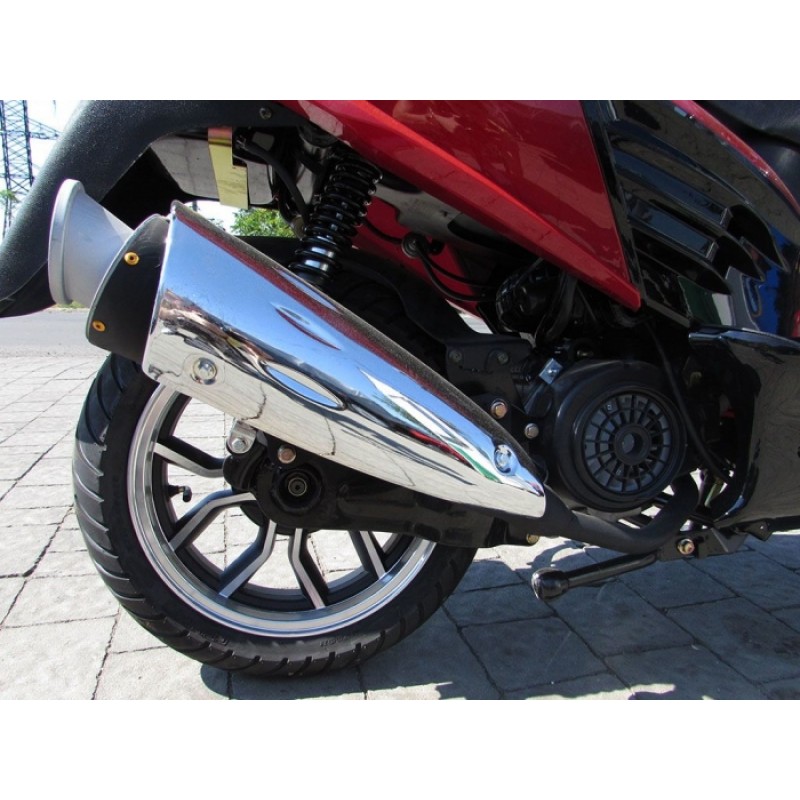 Автоматична трансмісія (варіатор) забезпечує плавний розгін і легке керування. Телескопічна передня підвіска та задня підвіска з двома гідравлічними амортизаторами гарантують стабільність і комфорт навіть на нерівній дорозі. Великі колеса 13″ забезпечують хорошу керованість і впевнену їзду.