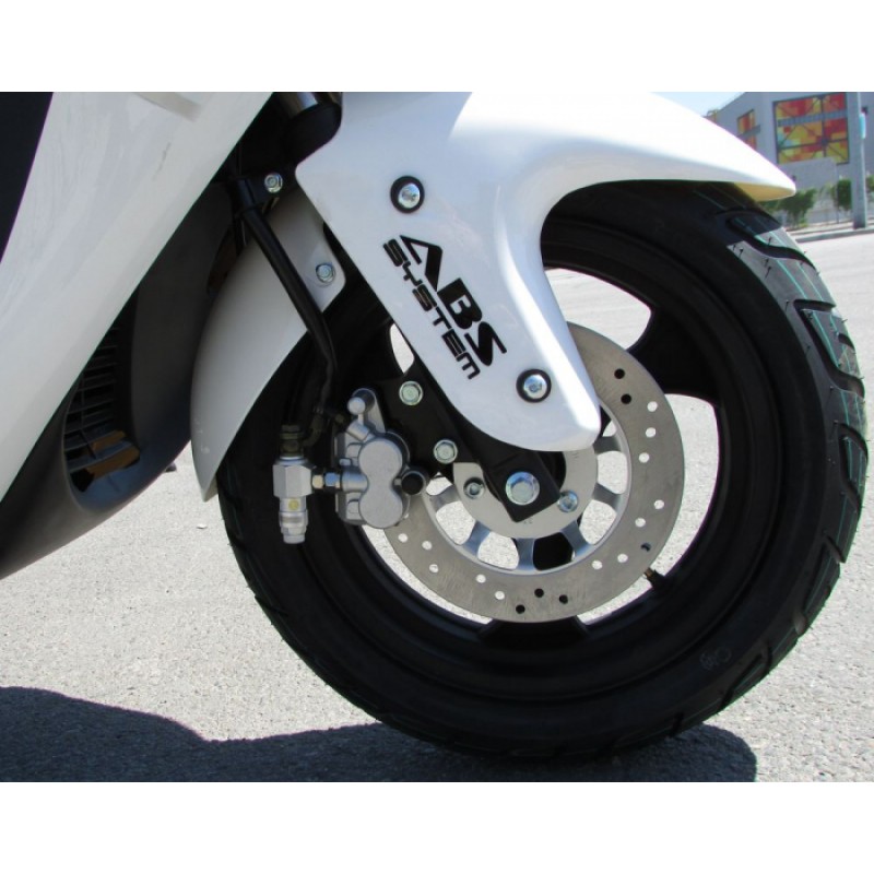 Автоматична трансмісія (варіатор) забезпечує плавний розгін і просте керування. Телескопічна передня підвіска та задня підвіска з двома гідравлічними амортизаторами гарантують стабільність і комфорт навіть на нерівному покритті. Великі колеса 13″ забезпечують хорошу керованість і впевнену їзду.