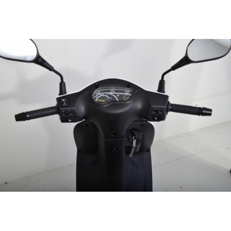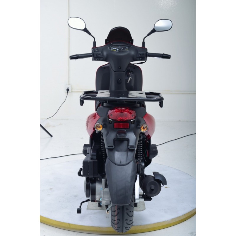 Скутер оснащений 4-тактним двигуном об’ємом 124.6 см³ з повітряним охолодженням, що забезпечує стабільну роботу і економічну витрату палива. Компактні колеса, телескопічна передня підвіска та надійна гальмівна система гарантують маневреність і безпеку в міських умовах.