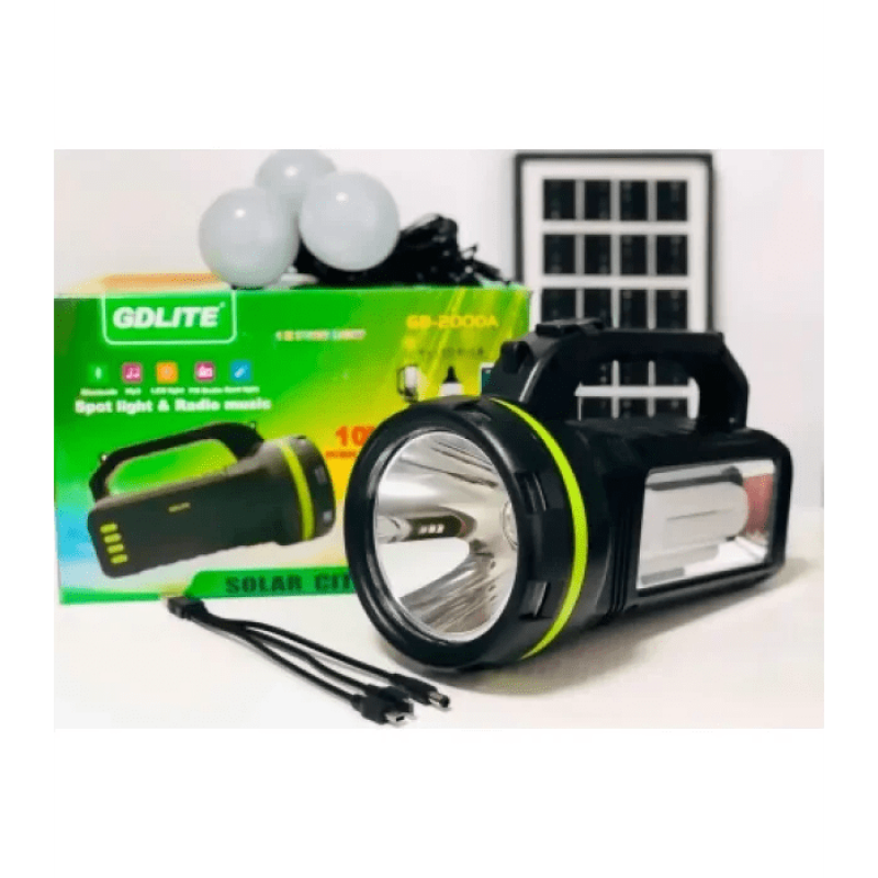 Автономна сонячна система GDLITE GD-2000A відмінно підходить як для домашнього користування, так і для любителів подорожей, риболовлі, мисливства та іншого активного відпочинку. Наявність сонячної панелі не залишить Вас без освітлення, а також завжди буде можливість зарядити мобільні телефони або інші гаджети. Наявність радіо та можливості слухати музику через Flash-накопичувач точно не дасть Вам нудьгувати навіть далеко від цивілізації. Це чудовий подарунок своїм близьким, друзям та собі самому!