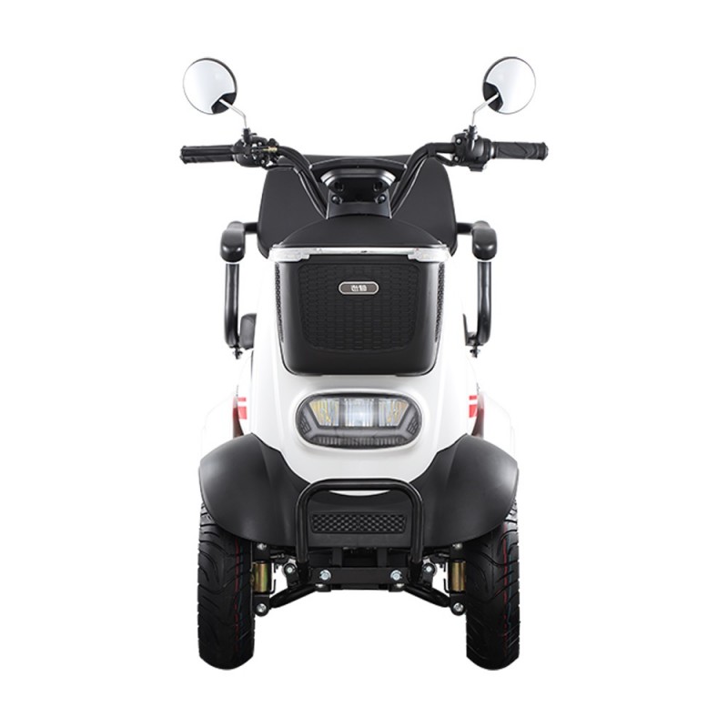 Продумана ергономіка включає широке м’яке сидіння з високою спинкою та підлокітниками, а також низьку платформу для ніг, що спрощує посадку та робить експлуатацію більш зручною. Місткий передній багажник і додатковий відсік під сидінням дозволяють перевозити особисті речі та покупки. Світлодіодна фара та габаритні вогні забезпечують хорошу видимість у темний час доби.