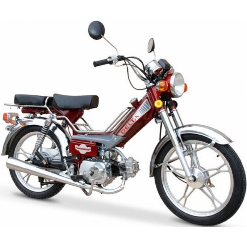 Модель обладнана електростартером і кікстартером, повноцінною світлотехнікою, поворотниками та дзеркалами заднього виду. Просте керування та механічна коробка передач роблять Delta 50 практичним транспортом для щоденного використання.